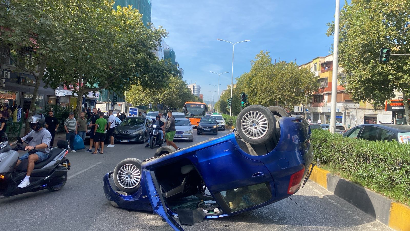 Një aksident rrugor ka ndodhur mesditën e sotme në një nga zonat më të frekuentuara të kryeqytetit, pranë “21 Dhjetorit”.