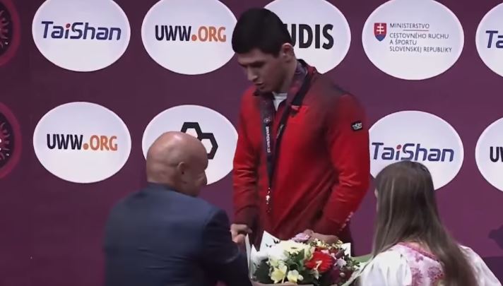 VIDEO/ Presidenti i Federatës Ruse të Mundjes i vendos me dhunë medaljen e artë kampionit shqiptar të Europës