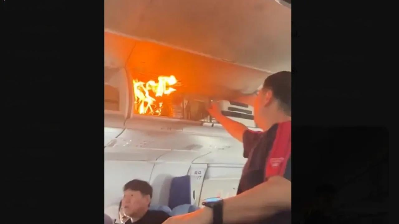 Fire breaks out in the overhead luggage bin on board Air China flight CA139 while flying between Hangzhou and Seoul.