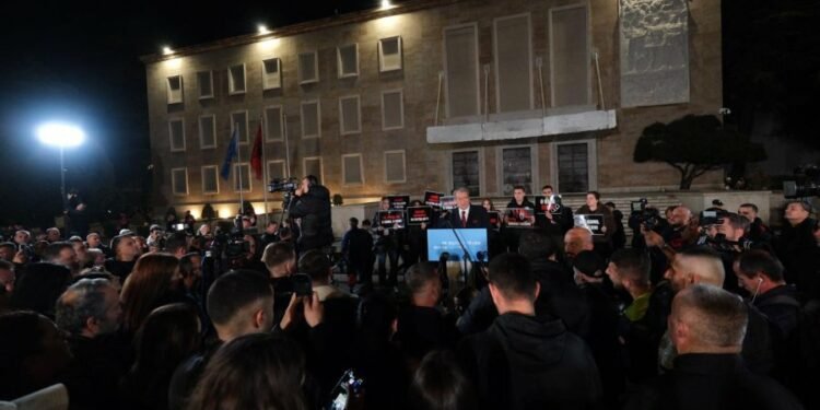 Kryetari i Partisë Demokratike të Shqipërisë, Sali Berisha, duke folur mbrëmjen e sotme në protestën qytetare inauguroi atë që ai e quajti ‘platforma parlamentaro-qytetare’, e ngritur simbolikisht përballë godinës së Kryeministrisë, të cilën ai e cilësoi ‘pallati i krimit’.