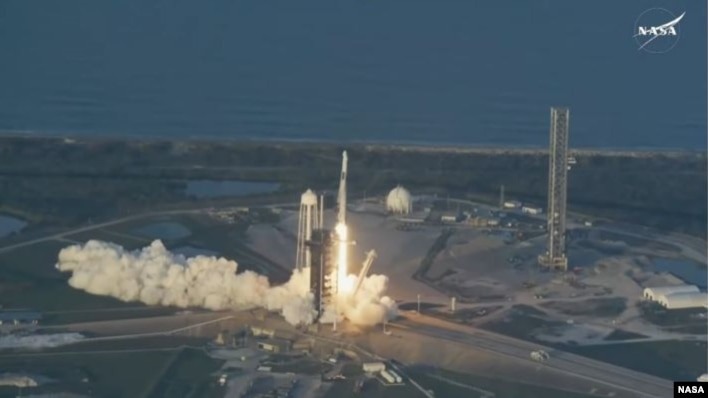 Raketa ‘Falcon 9’ e kompanisë SpaceX u nis nga Qendra Hapësinore Kennedy e NASA-s, në Florida, me një ekuipazh prej katër personash: dy astronautët e NASA-s, Anne McClain dhe Nichole Ayers, japonezin Takuya Onishi dhe rusin Kirill Peskov. Ekipi është pjesë e një rotacioni rutinë gjashtëmujor.