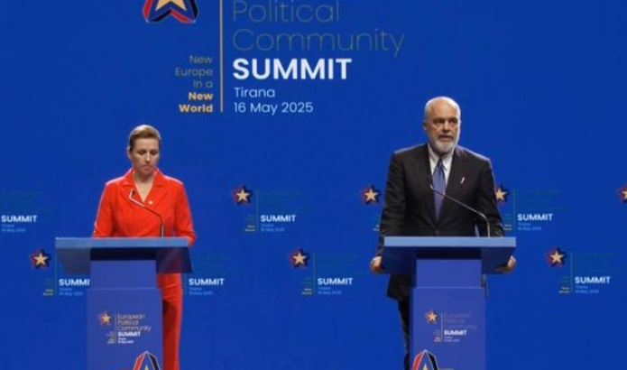 Kryeministri Rama po mban një konferencë të përbashkët për shtyp me kryeministren e Danimarkës Mette Frederiksen që në vjeshtën e këtij viti do të mirëpres Samitin e ardhshëm të Komunitetit Politik Europian.