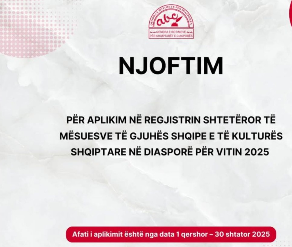 “A e ndien se gjuha jonë është më shumë se fjalë? Ajo është rrënjë, kujtim, identitet! Nëse dëshiron të japësh kontributin tënd, atje ku gjuha shqipe dëgjohet më rrallë, por ndihet më fort, është koha të bëhesh pjesë e Regjistrit Shtetëror të Mësuesve të Diasporës”, theksoi MEPJ në një postim në rrjetet sociale.