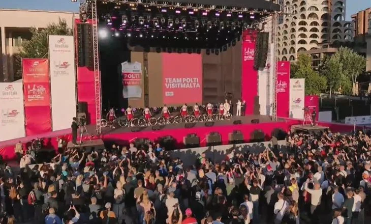 Në sheshin ‘Skënderbej’ në qendër të Tiranës, 23 skuadrat dhe 184 çiklistët e Giro d’Italia 2025 u prezantuan para publikut vendas dhe jo vetëm. Në edicionin e 108 të një prej xhirove më të famshme të çiklizmit në botë, tre etapat e para do zhvillohen në Shqipëri nga 9-11 maji në Durrës, Tiranë dhe Vlorë. Pasditen e së mërkurës, nën një atmosferë dhe organizim ndërkombëtar në bashkëpunim me autoritetet shqiptare dhe traditën e kulturën vendase, 184 çiklistët dolën në skenë me biçikletat që nuk mund të mungonin. Gjithçka nisi me një valle nga Ansambli i Këngëve dhe Valleve, për të vijuar me fjalën e ministers së Arsimit dhe Sportit, Ogerta Manastirliu, e cila tha se shpreson që ky event të kthehet në një festë. ’Giro...